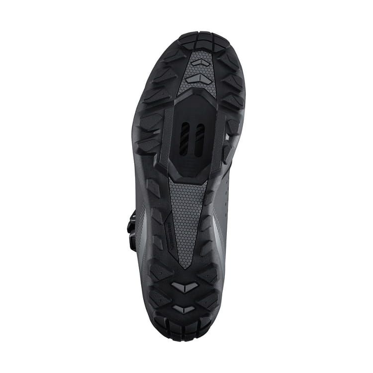 - Lekka podeszwa powstała z gumy i wzbogacono ją o mocny bieżnik, dzięki czemu zapewnia lepszą przyczepność po zejściu z roweru. Środkowa część podeszwy jest wzmocniona włóknem szklanym, dzięki czemu wzrasta zdolność do przenoszenia mocy na pedały. Indeks sztywności modelu SH-ME301 wynosi 5 punktów w 12-stopniowej skali, co jest optymalnym kompromisem między komfortem, a efektywnością.