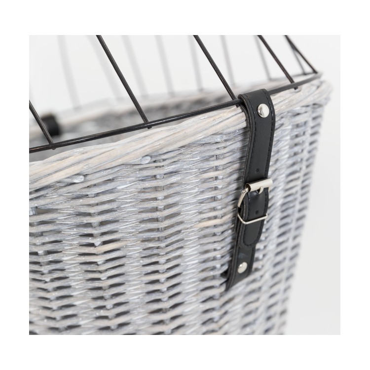 W zestawie z kratą, która umożliwi Ci zabranie psa na wycieczkę rowerową bez obawy o jego bezpieczeństwo. Kosz z ocynkowaną kratą bezpieczeństwa, wykonany ze stabilnej plecionki wiklinowej, gwarantuje bezpieczne dotarcie do celu, bez nieprzyjemnych przygód. Poza tym kosz zamontujesz na bagażniku łatwo i szybko, dzięki gotowemu mocowaniu na jego spodzie. Udźwig kosza wynosi do 8 kg. Ponadto kosz jest wyposażony w miękką welurową poduszkę, dla wygody Twojego pupila 🐶🐱 podczas podróży.