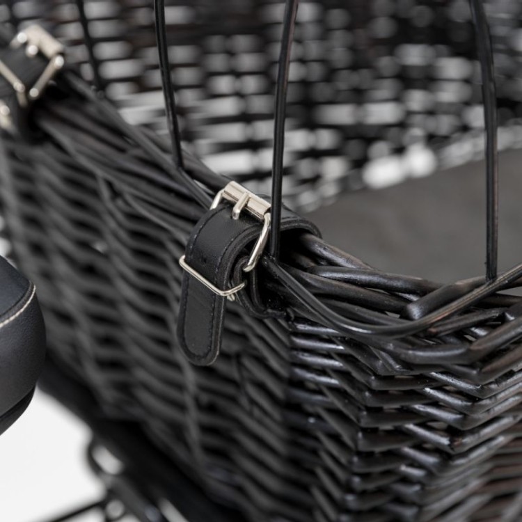 W zestawie z kratą, która umożliwi Ci zabranie psa na wycieczkę rowerową bez obawy o jego bezpieczeństwo. Kosz z ocynkowaną kratą bezpieczeństwa, wykonany ze stabilnej plecionki wiklinowej, gwarantuje bezpieczne dotarcie do celu, bez nieprzyjemnych przygód. Poza tym kosz zamontujesz na bagażniku łatwo i szybko, dzięki gotowemu mocowaniu na jego spodzie. Udźwig kosza wynosi do 8 kg. Ponadto kosz jest wyposażony w miękką welurową poduszkę, dla wygody Twojego pupila 🐶🐱 podczas podróży.