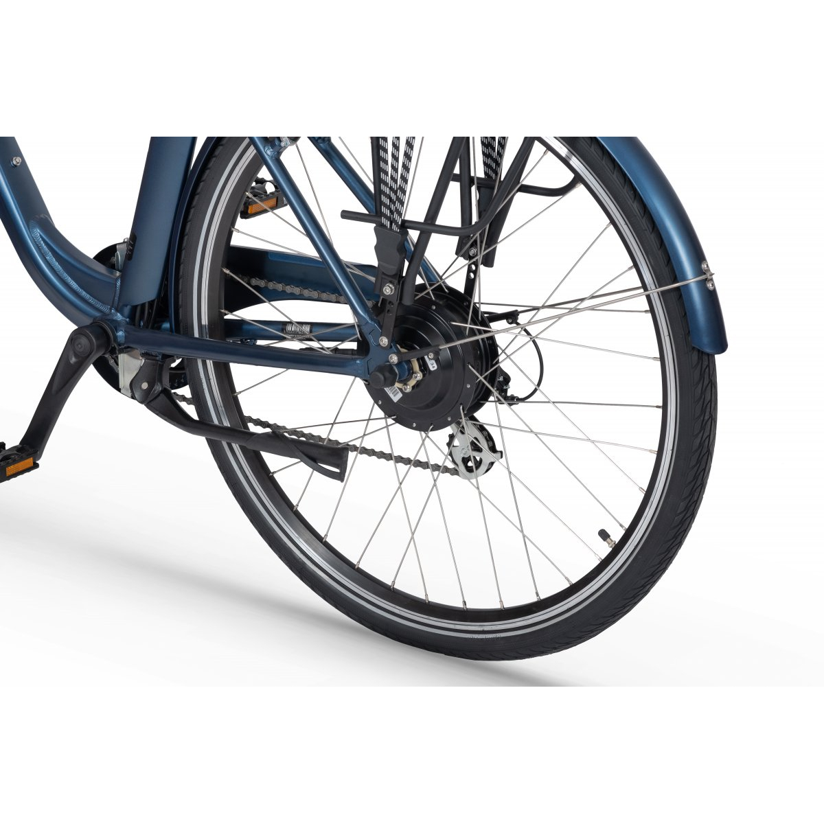 Bazą roweru jest rama wykonana z aluminium w procesie hydroformowania, dzięki temu jest lżejsza i posiada większą sztywność. Ma to istotne znaczenie ze względu na brak poziomej rurki. Samo wejście na rower i zejście to łatwa i przyjemna sprawa. Całość przekłada się na lepsze i pewniejsze prowadzenie roweru jak również nieco zwiększa zasięg. Bateria zamontowana jest na bagażniku, możemy ją w łatwy sposób naładować zarówno w rowerze jak i po szybkim zdemontowaniu. Rower dostępny jest w czarnej kolorystyce w rozmiarze 19″. Waga roweru wynosi około 24,1 kg.