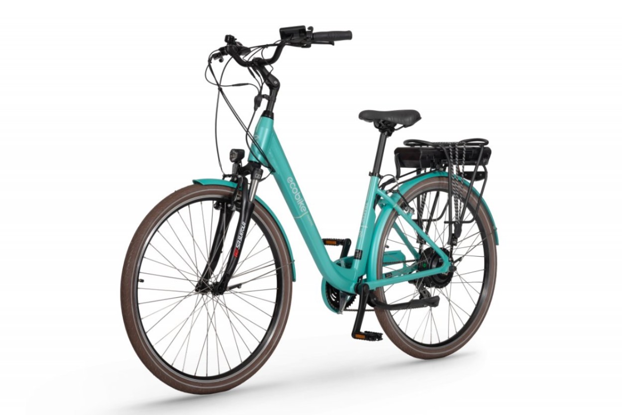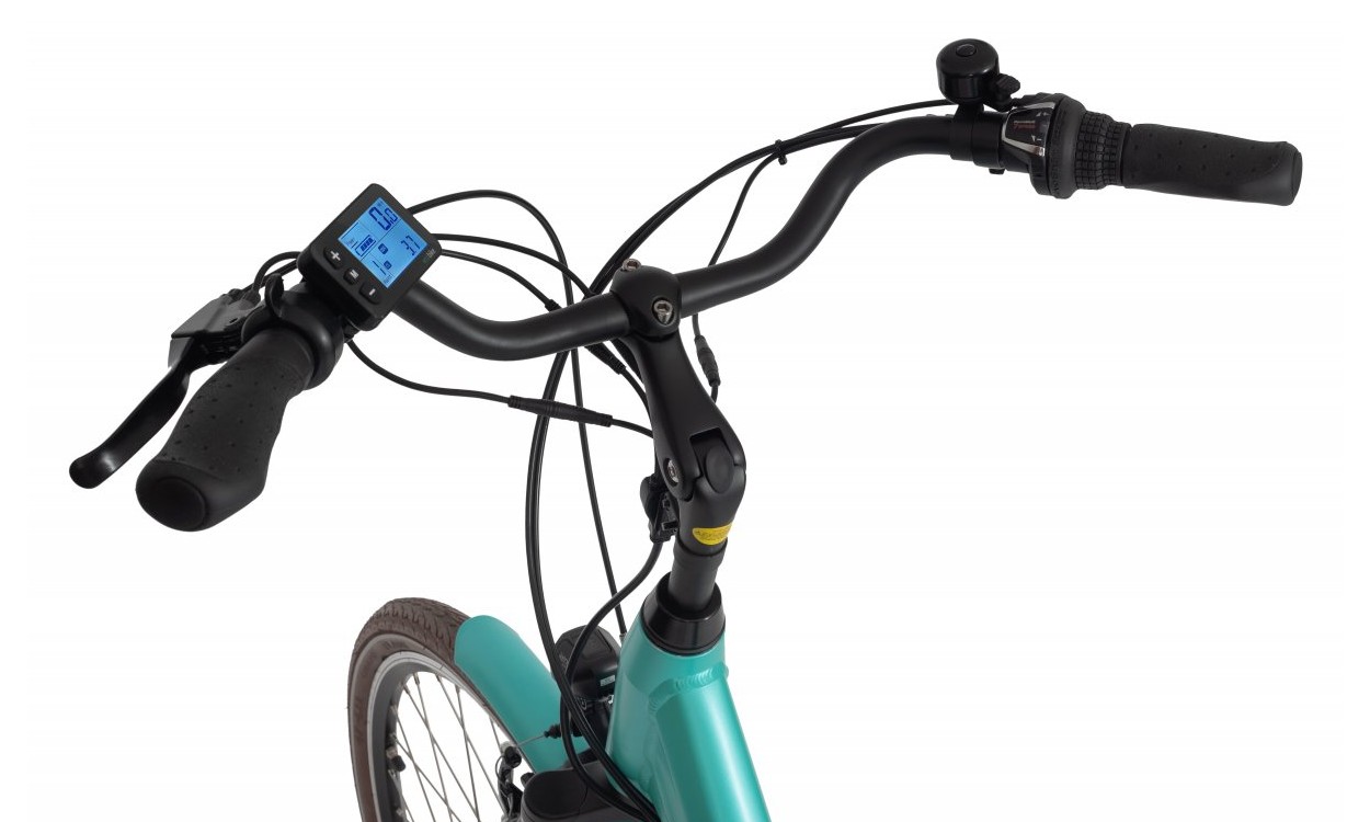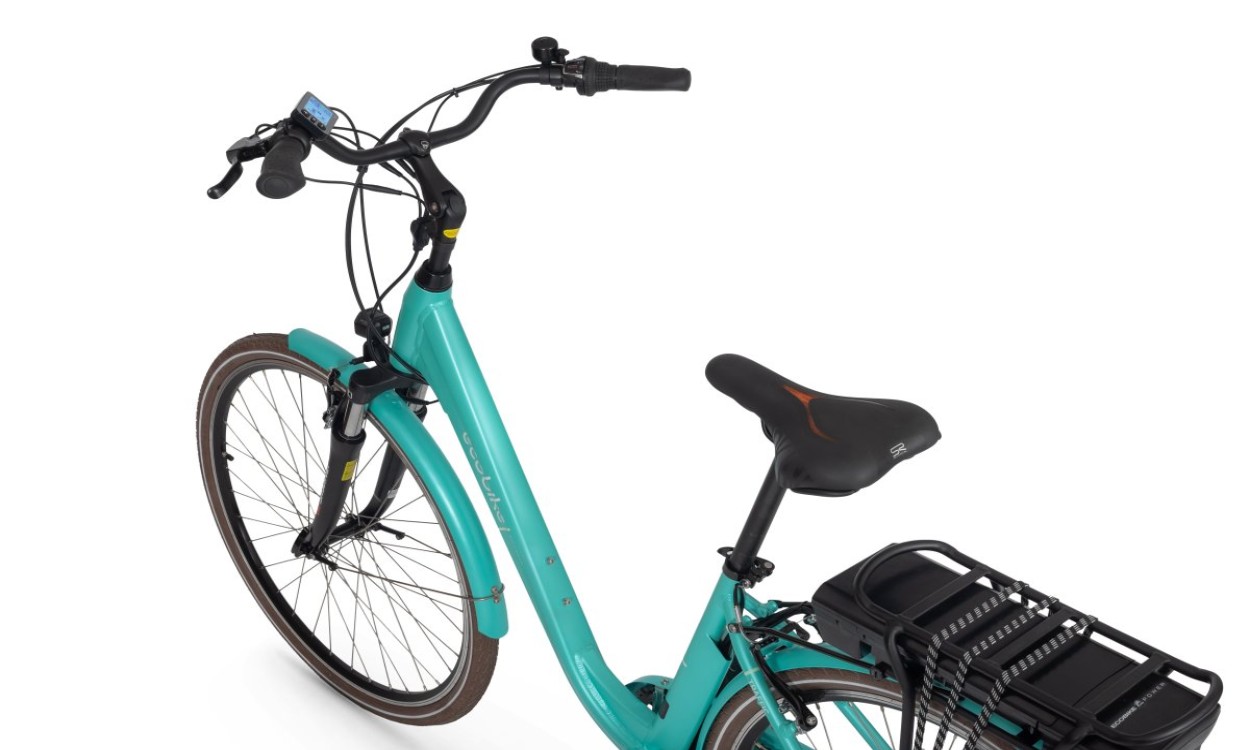 Bazą roweru jest rama wykonana z aluminium w procesie hydroformowania, dzięki temu jest lżejsza i posiada większą sztywność. Ma to istotne znaczenie ze względu na brak poziomej rurki. Samo wejście na rower i zejście to łatwa i przyjemna sprawa. Całość przekłada się na lepsze i pewniejsze prowadzenie roweru jak również nieco zwiększa zasięg. Bateria zamontowana jest na bagażniku, możemy ją w łatwy sposób naładować zarówno w rowerze jak i po szybkim zdemontowaniu. Rower dostępny jest w miętowej kolorystyce w rozmiarze 17″. Waga roweru wynosi około 24,3 kg.