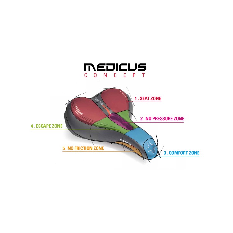 Siodło Wittkop TWIN Medicus 2.0 z żelem to anatomicznie zoptymalizowane siodełko zaprojektowane specjalnie do rowerów wyścigowych i górskich. Koncepcja Medicus TWIN opiera się na analizie budowy ciała człowieka i interakcji z ruchem podczas jazdy na rowerze. Pięciostopniowa konstrukcja dzieli siodło na 5 różnie wyściełanych stref, aby zapewnić wysoki komfort dynamiczny. Zwiększona wyściółka tylnej strefy umożliwia wygodną amortyzację kości siedziska. Dzięki specjalnemu ukształtowaniu tej strefy, nacisk wywołany ruchem rotacyjnym miednicy rozkłada się na całe siedzisko. To siodło zostało opracowane we współpracy z ortopedą dr. Torsten Werlich rozwija i opiera się na sprawdzonej zasadzie Wittkop Medicus.