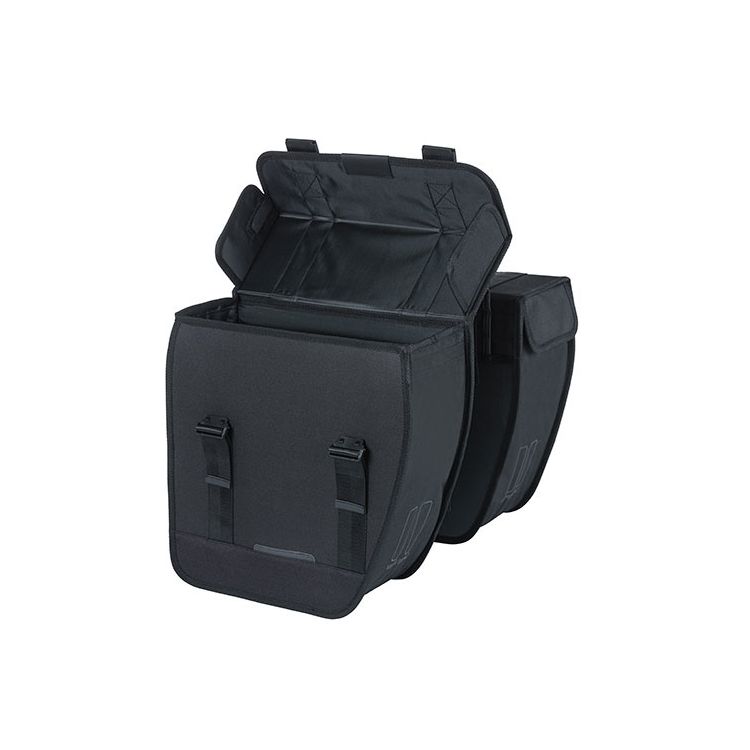 Jeśli poszukujesz przestronnej torby na codzienne zakupy lub ekwipunek na krótką wycieczkę rowerową, ta czarna torba jest doskonałym wyborem. Jej solidna konstrukcja z wodoodpornego materiału 600D utrzymuje kształt torby i zapewnia ochronę przed deszczem. Klapy przeciwdeszczowe skutecznie zabezpieczają zawartość przed wilgocią.