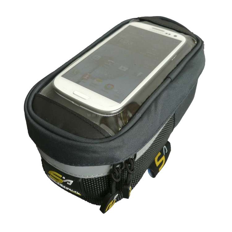 Przezroczysty materiał umożliwia obserwację ekranu w trakcie jazdy. Praktyczna pojemna torba na wszystkie niezbędne rzeczy, które zawsze trzeba mieć w zasięgu wzroku (telefon komórkowy, portfel czy klucze).